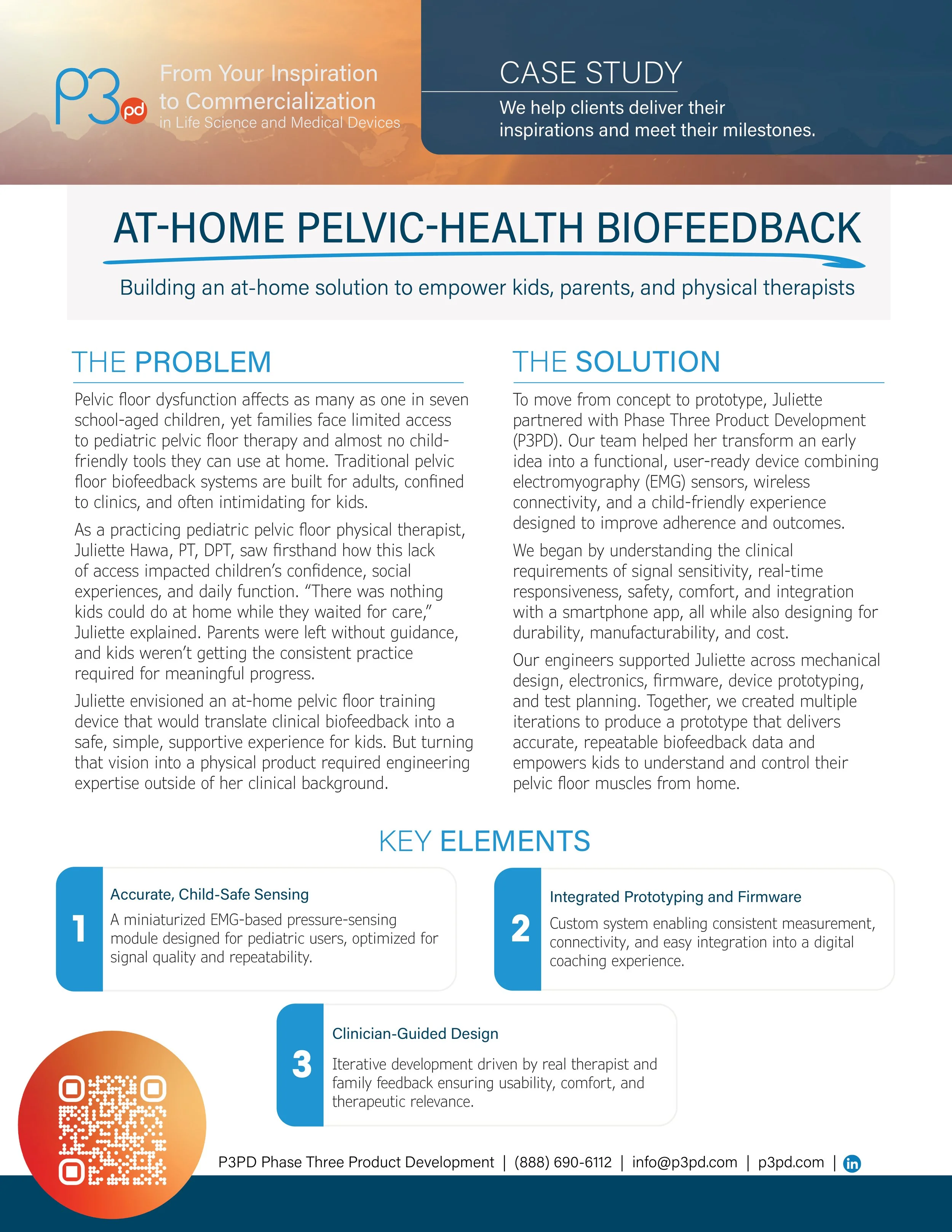 At Phase Three Product Development (P3PD), we partner with founders who see gaps in healthcare and have the clarity and courage to build something better. Our collaboration with Juliette Hawa, PT, DPT, founder of PFRx Pelvic Health, exemplifies exactly that.
